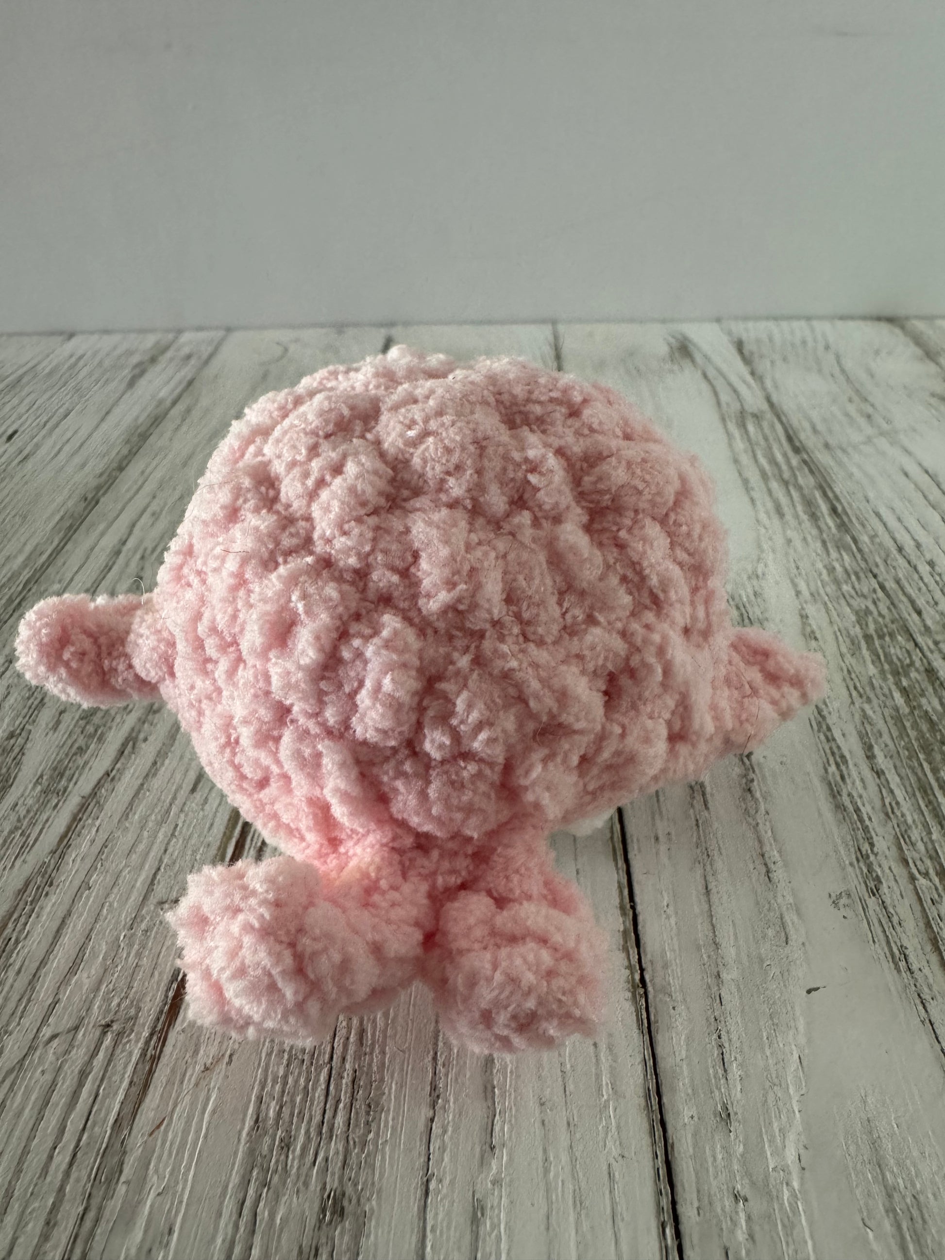 Say hello to Rosie, the bubbliest little whale in the sea! Crocheted with soft pink yarn and stuffed with love, Rosie is a palm-sized plushie who’s always ready to brighten your day. With sparkly black safety eyes and a tiny stitched smile, she’s as cute as can be—perfect for gifting, collecting, or cuddling.